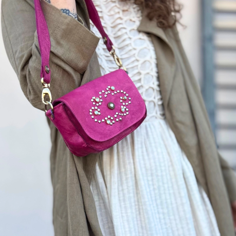 Dimentica le mode passeggere e accessori da dover cambiare ogni stagione, questa borsa in pelle è un piccolo gioiello da custodire e sfoggiare per anni. Dal suo colore deciso e dettagli curati, questa borsa è impreziosita da strass e lavorata interamente a mano, per regalarti un’eleganza senza tempo.