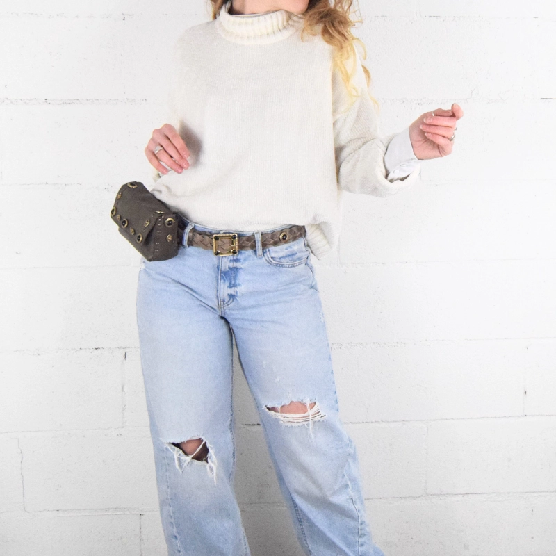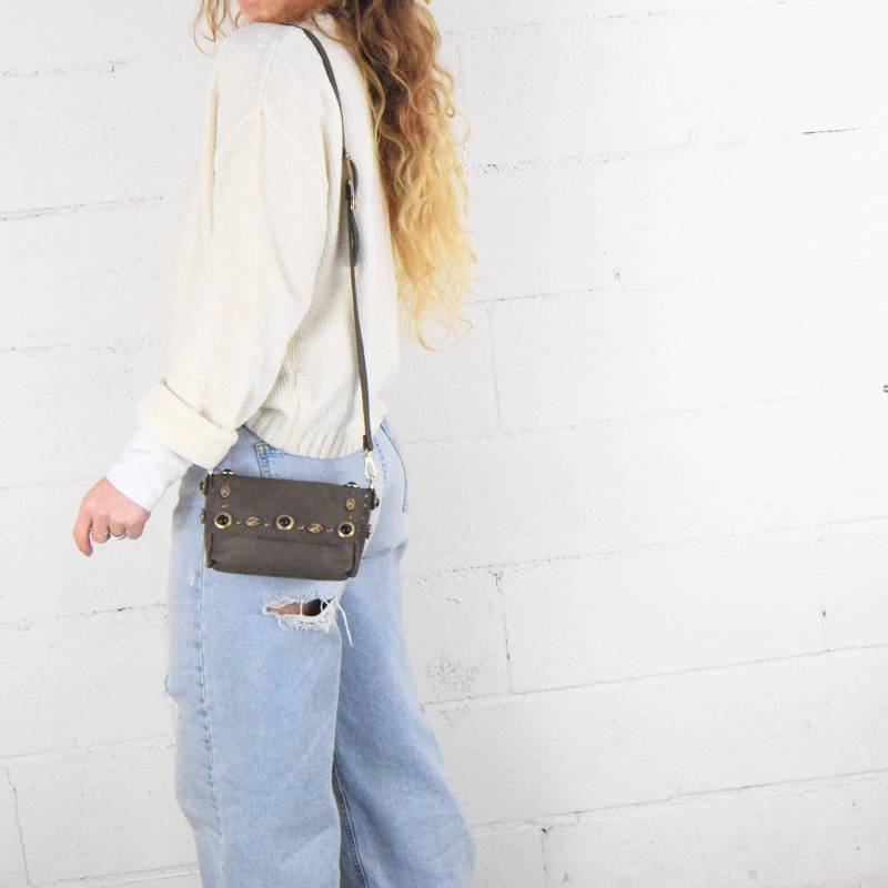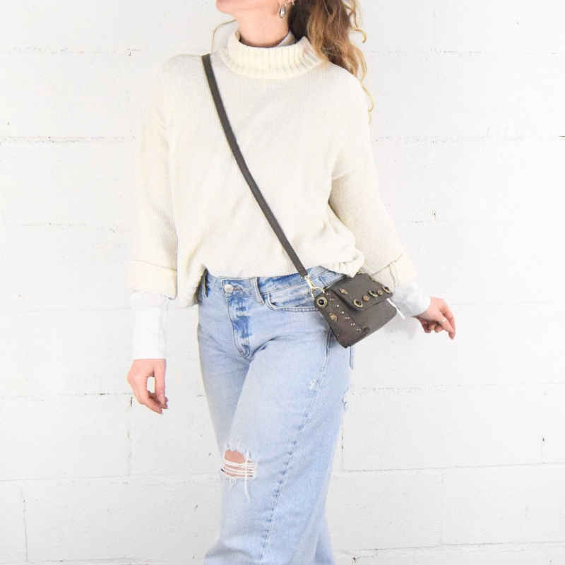 Dalle piccole dimensioni ma sorprendentemente capiente, è ideale da indossare la sera a tracolla o, nelle tue serate più movimentate, a modi marsupio per sentirti libera di muoverti.