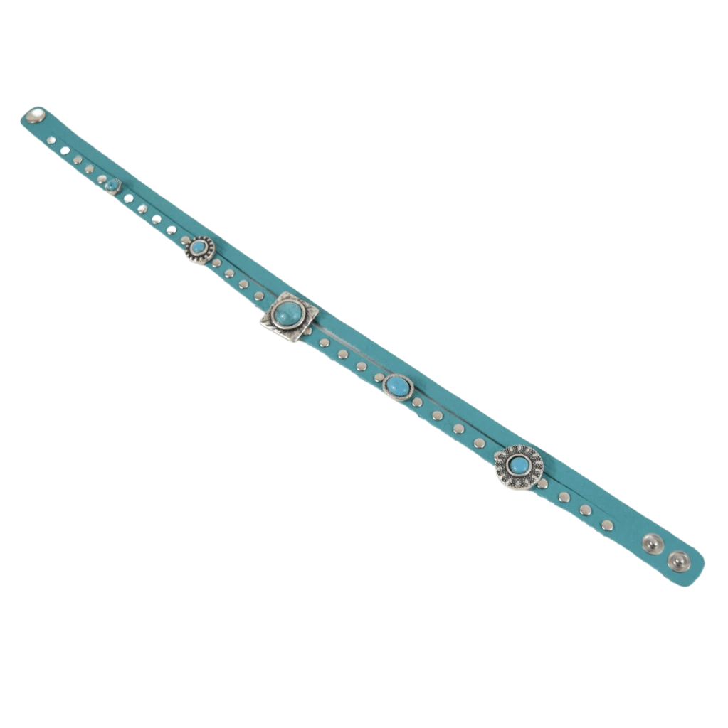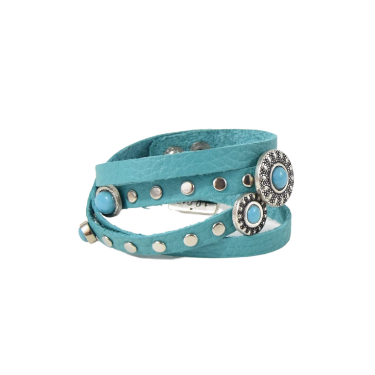 • Bracciale borchiato realizzato al 100% in vera pelle vitello turchese