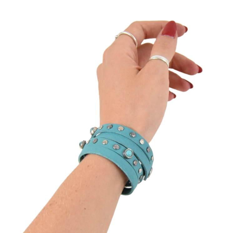 • Bracciale borchiato realizzato al 100% in vera pelle vitello color turchese