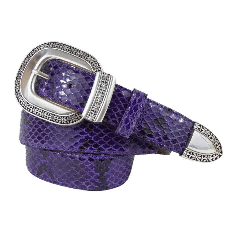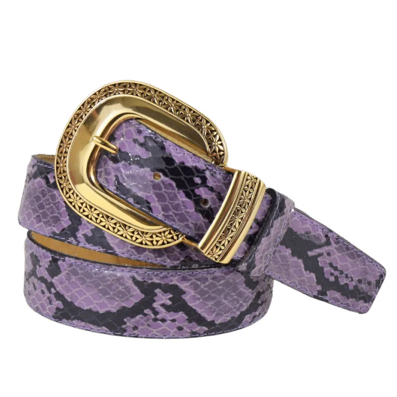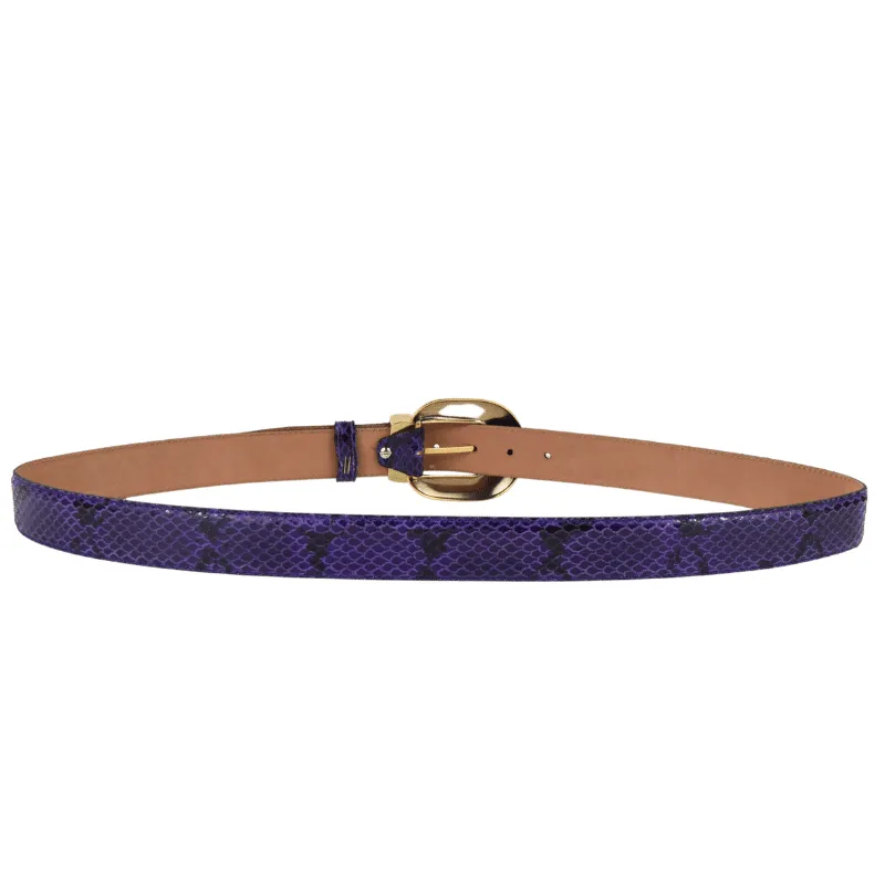 Cintura in pelle stampata effetto pitonato dal colore deciso e in perfetto contrasto con l’oro della fibbia. Un accessorio ideale per rendere il tuo outfit eccentrico in maniera elegante, con un tocco animalier.