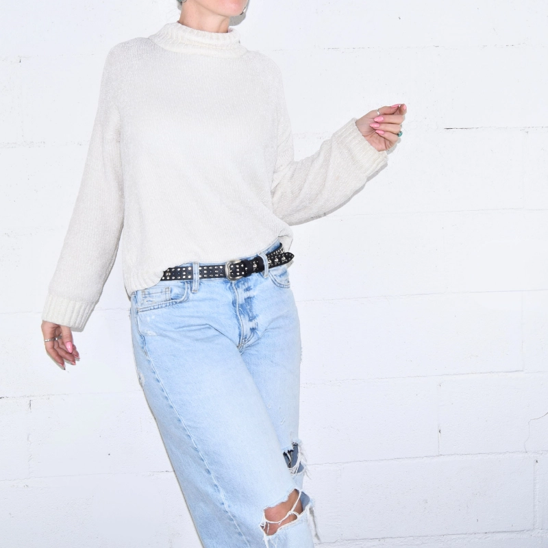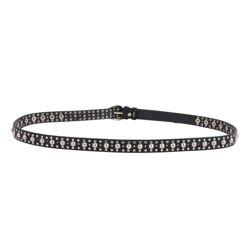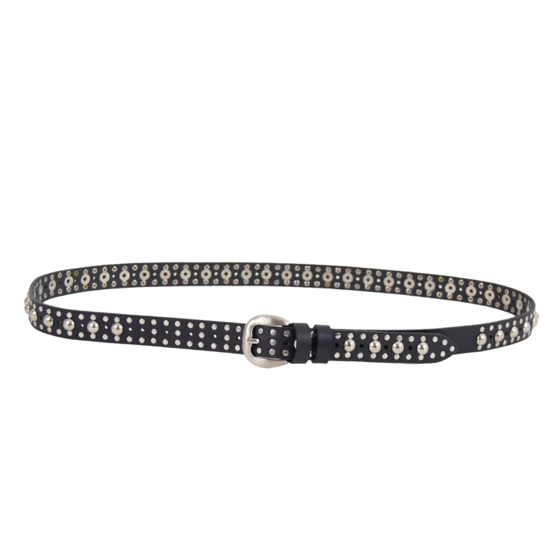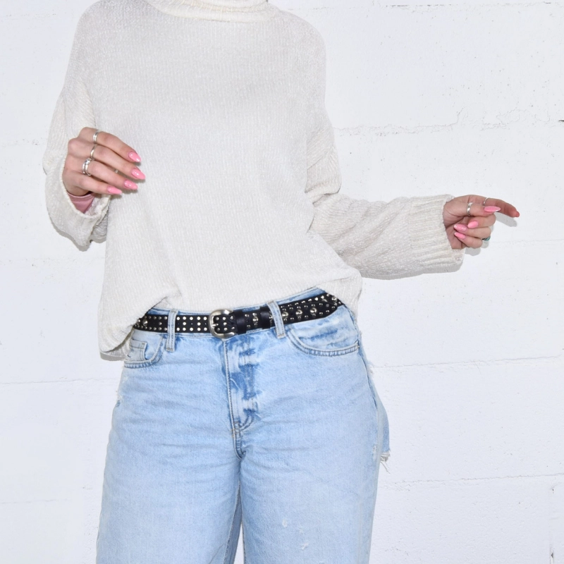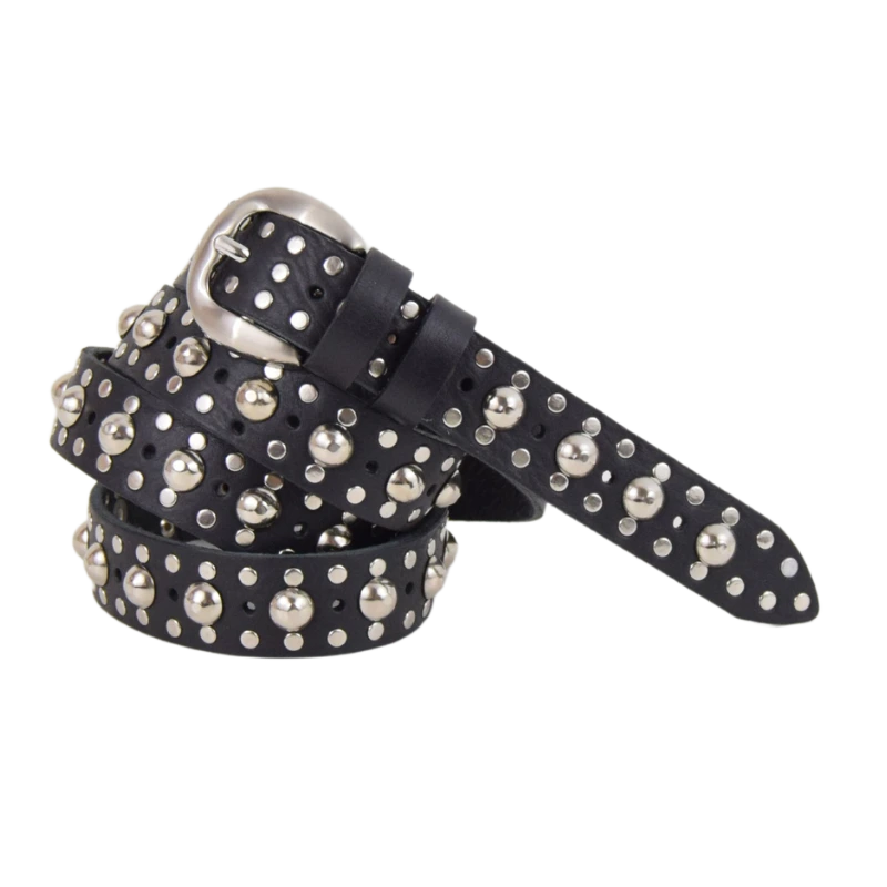 Cintura in cuoio e interamente borchiata a mano, è l’accessorio perfetto da indossare su un paio di jeans per dare un tocco rock al tuo look.