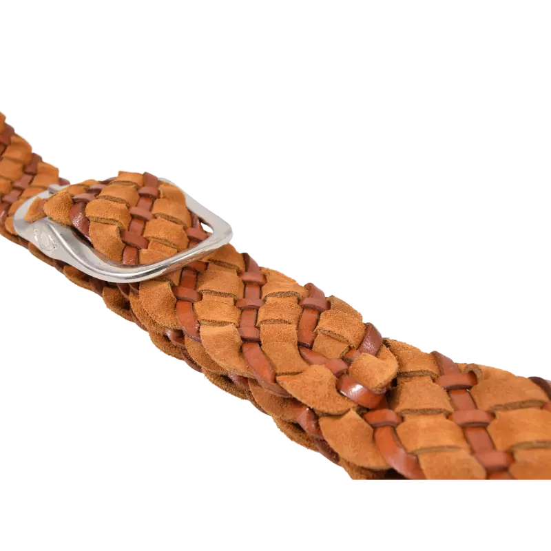 Cintura intrecciata dallo stile elegante e vintage, ideale da indossare su maxi maglioni o abiti. Un accessorio intramontabile, che puoi indossare ovunque grazie alla possibilità di poter inserire la fibbia in tutti gli intrecci, così da non essere condizionata dai fori.