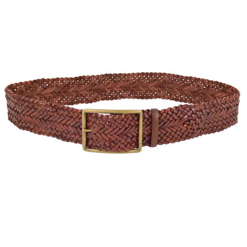 Cintura in cuoio alta, perfetta da abbinare con maxi maglioni o vestiti per enfatizzare la vita. La trama intrecciata, classica ed elegante, è abbinata ad una fibbia squadrata che dona un tocco sportivo, così da poterla indossare sia di giorno che di sera.