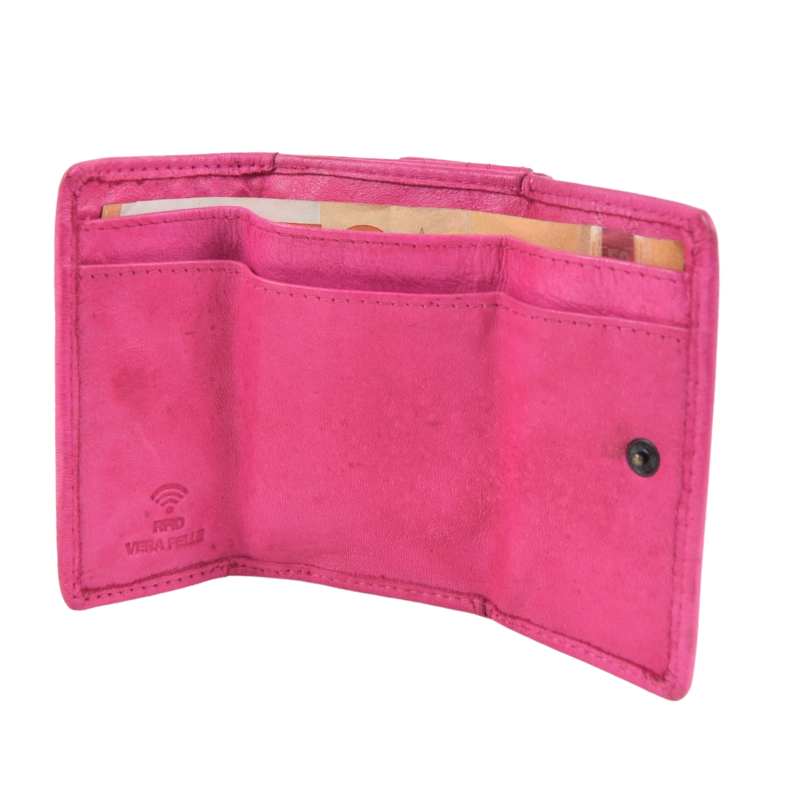 Portafoglio in pelle realizzato con un pellame molto morbido e lavorato per ottenere un effetto vissuto.