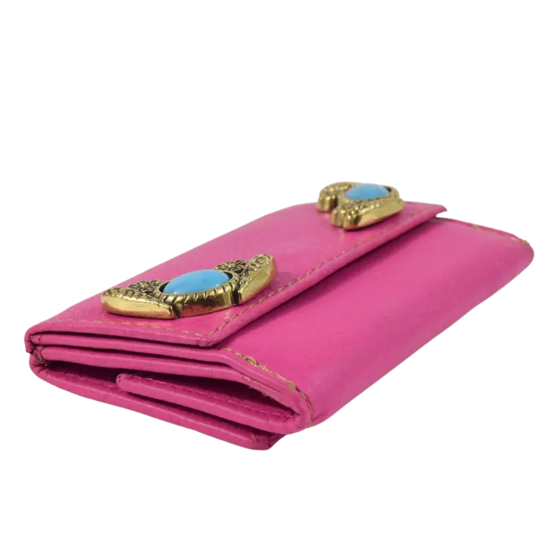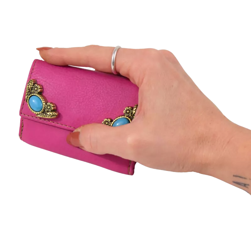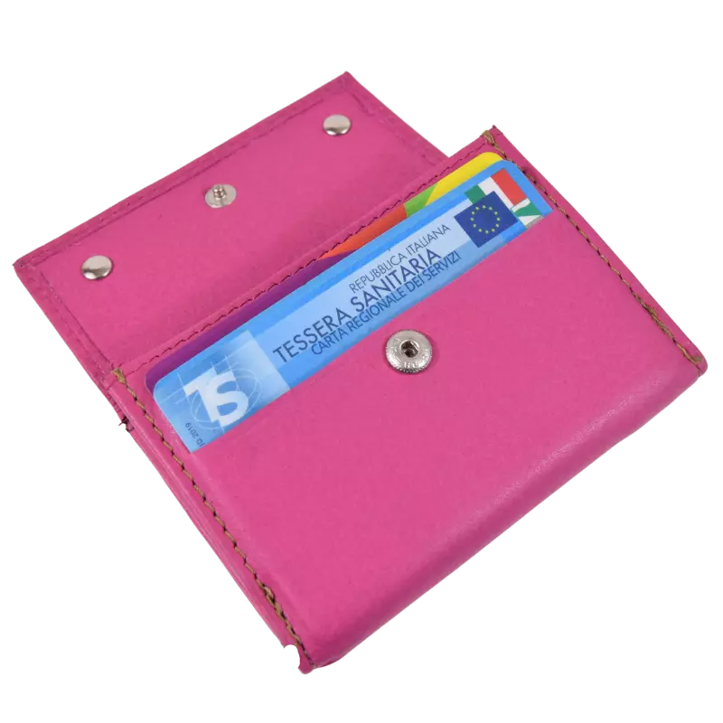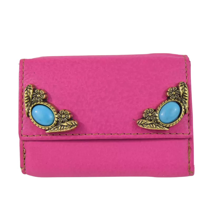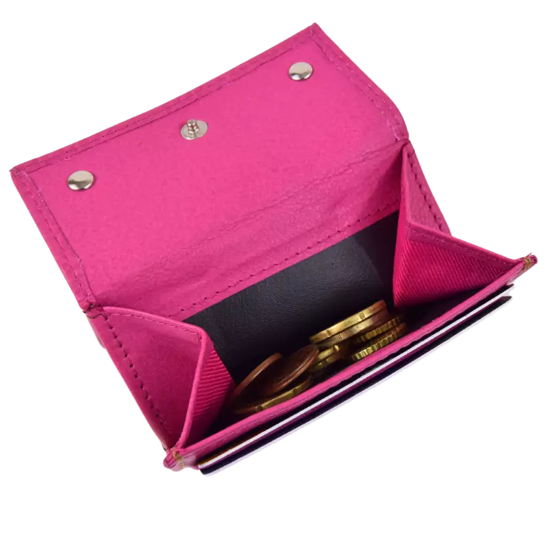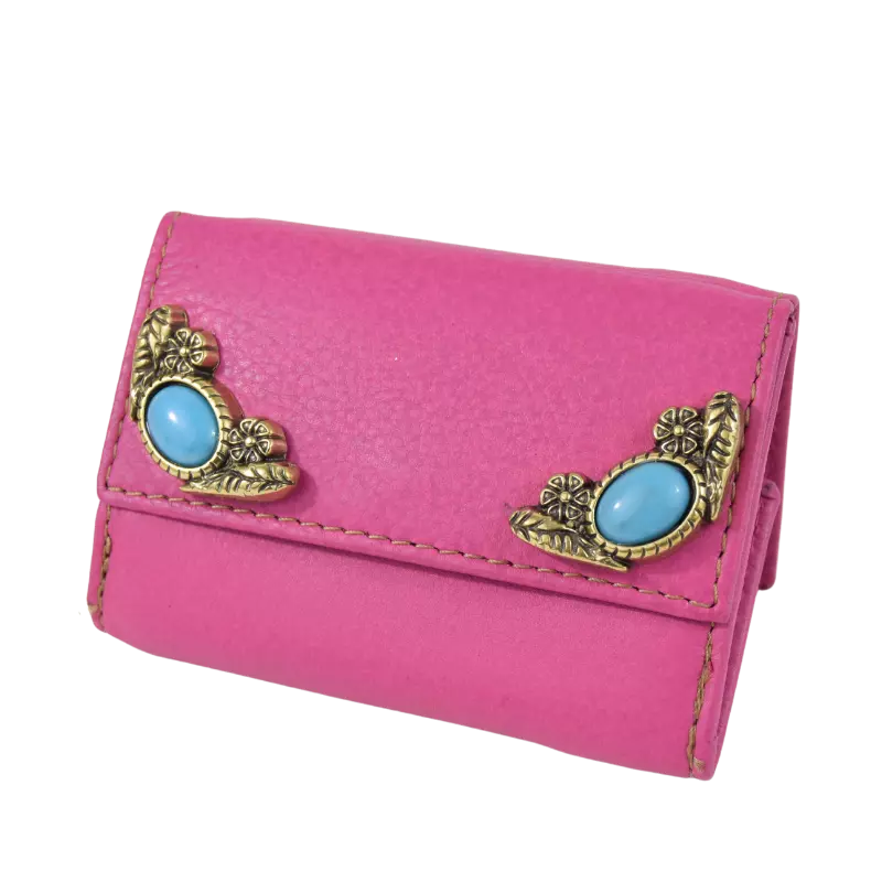Portafoglio in pelle piccolo ed estremamente capiente, dai dettagli turchesi, perfetto per avere un tocco di colore ovunque tu vada.