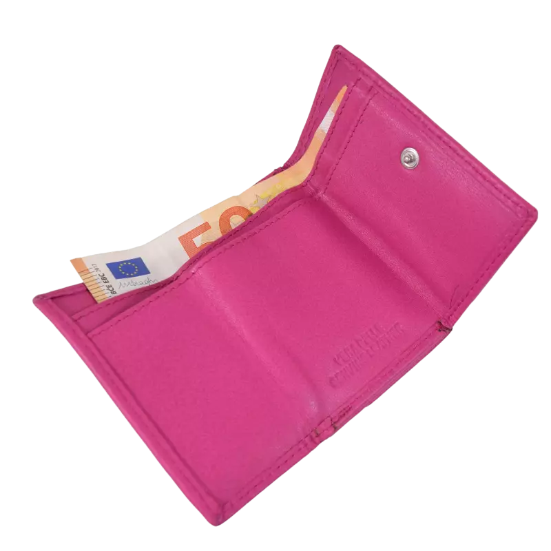 Ci stanno comodissime banconote di taglio fino a €50,00, diverse monete e volendo anche più carte all’interno di un solo taglio, basta far ammorbidire un pò il pellame!